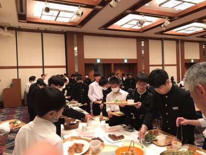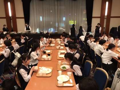 USJから徒歩でホテル京阪ユニバーサルに移動し、すぐに夕食会場に入りました。夕食もバイキングです。元気にたくさん食べていました。