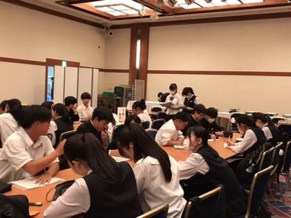 夕食後、班長は食事会場に残って班長会を行いました。班長のみなさん、遅くまでお疲れさまでした。