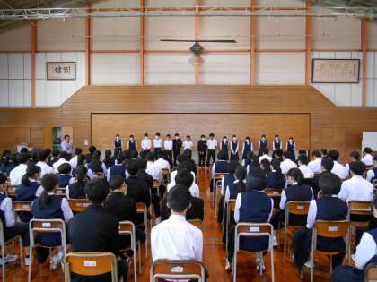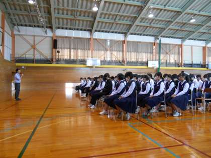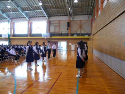 学年主任の先生のお話の後、昨年度から修学旅行に向けて様々な準備等を頑張ってくれた修学旅行実行委員のみなさんに労いの拍手と感謝のエールが送られました。