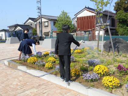 環境委員の生徒が今日も水やりをしてくれています。
