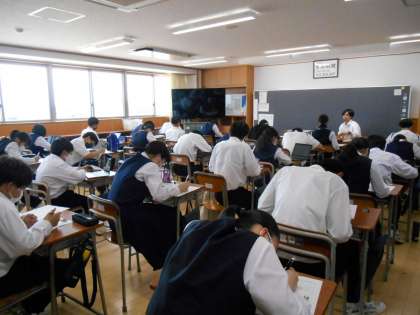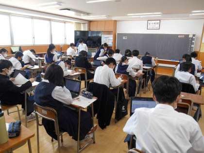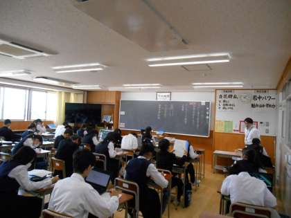 2年生 授業の様子 公開日 2023/05/17 更新日 2023/05/17 2年 5月17日(水) 2年生は、5限の学活の時間に、「社会に学ぶ『14歳の挑戦』」に向けて、履歴書(自己紹介カード)を作成しました。自分の長所や趣味・特技等の自己PRや将来の夢、「14歳の挑戦」で頑張りたいことなどについて、しっかりと下書きをしてから丁寧に清書していました。 写真上:2−1 写真中:2−2 写真下:2−3