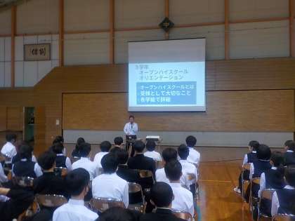 6限目に、県立高校のオープンハイスクールのオリエンテーションを行いました。進路に向けて、真剣に話を聞いている姿がとても素晴らしかったです。