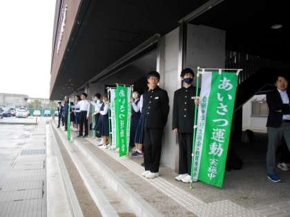 今日は、2年3組があいさつ運動を頑張っていました。