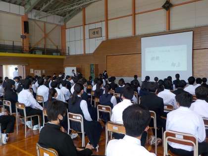 2年生は、「14歳の挑戦」に向けて学年集会を開きました。