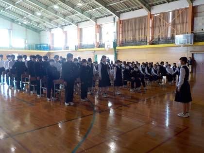 「14歳の挑戦」のスローガンを発表しました。学年生徒会のメンバーがスローガン作成や学年集会の進行などを行いました。