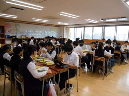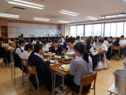2年生は、グループの形になって和やかに給食の時間を過ごしています。