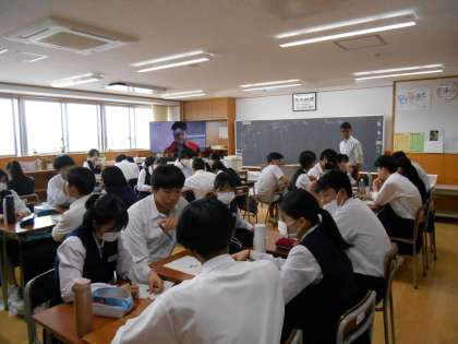 3年生は、市選手権大会を前に、ココロ部の「最後のリレー」という動画をみながら、部活動での出来事を通して、キャプテンとしての責任や親友としての葛藤、部活動として何が大事かということについて、みんなで話し合い、考えを深め合いました。