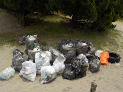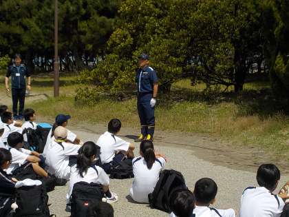 伏木海上保安庁の方からは、ゴミ拾いの注意点についての指導がありました。みんなが積極的にゴミを拾っていて、たくさんのゴミ袋が満杯となりました。