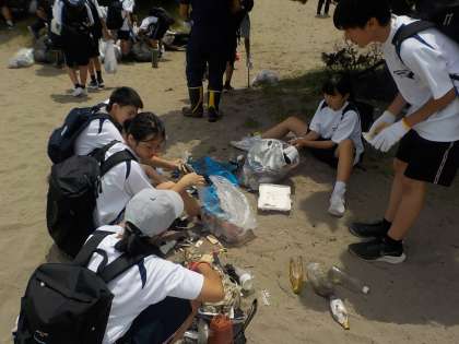 学校に戻って、どんな種類のごみがあったか、今後どのようなことに取り組んでいくべきかなどを振り返ります。