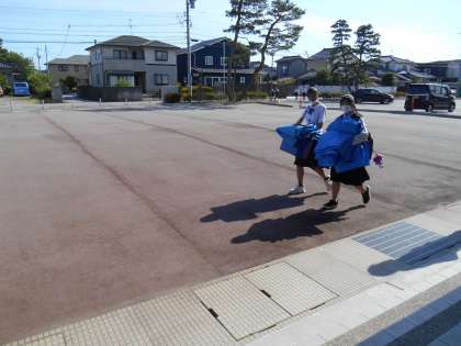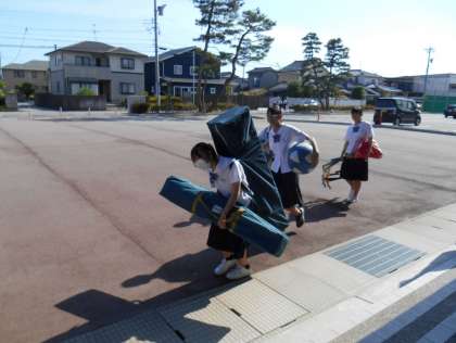 陸上競技部の生徒たちが土日の大会の荷物を運んでいました。