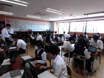 国語の授業では、「魅力的な提案をしよう」をテーマに担当の先生に富山の魅力をプレゼンするための準備を班で進めていました。魅力的な発表になるように、分かりやすいスライド作成等の準備を頑張りましょう。