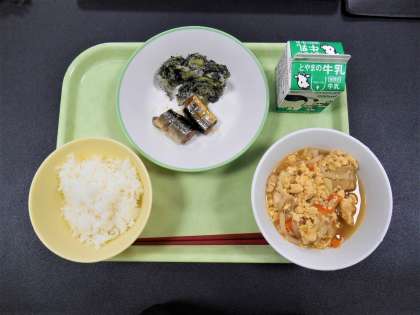 今日の給食 公開日 2023/06/09 更新日 2023/06/09 今日の岩瀬中 6月9日(金) 今日の給食は、「きときとランチ」です。 献立は、 ごはん、牛乳、さんまのマーマレード煮、よごし、卵とじ です。
