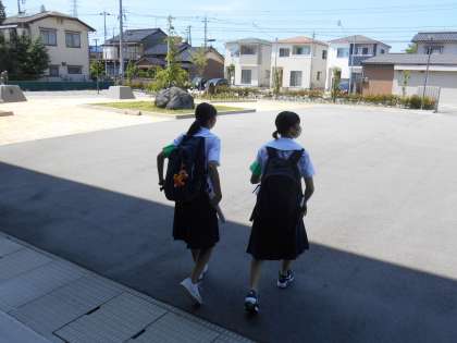 玄関で事業所ごとに、時間を再確認している様子もみられました。