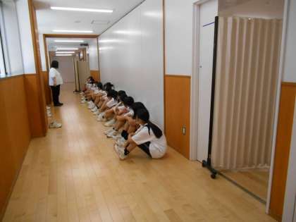 男子は2階多目的教室で、女子は1階会議室で、心電図と心蔵の音の検査を受けていました。