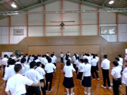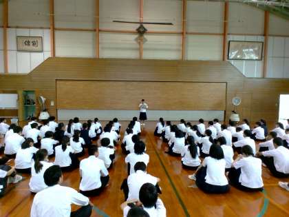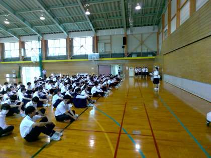 学年集会では、体育大会結団式に向けて、実行委員から3年生一丸となって、協力して取り組んでいくことを話しました。