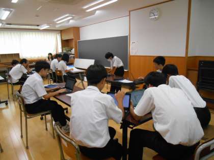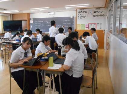 夏休みの宿題の提出や「14歳の挑戦」のまとめ発表に向けて、スライド作成を開始しました。