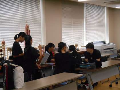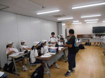 部活動終了後、冷房の効いた部屋でクールダウンをしてから、下校しています。夏休みの宿題を進めたり、先生に質問したりしながら、時間を過ごしています。