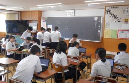 2年生は、今日も総合の時間に「14歳の挑戦」の発表会に向けて、リハーサルや発表資料の修正を行っていました。