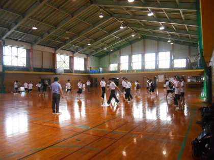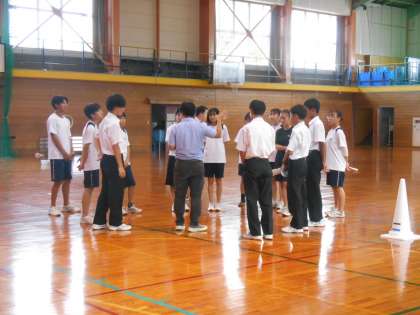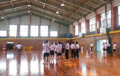 放課後に、体育館で12日に予定している新人大会の壮行会に向けたリハーサルがありました。