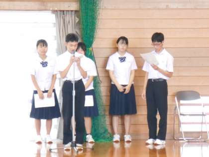 写真下:生徒会会長の言葉