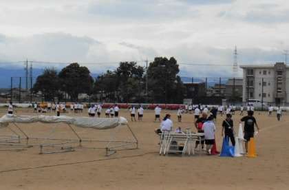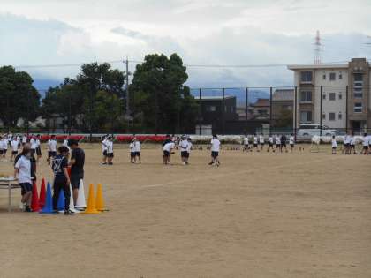 2年生の学年種目「It's show time!!〜二刀流〜」の練習の様子です。