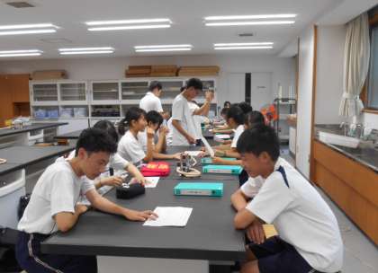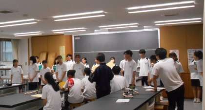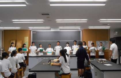 放課後、選挙管理委員、前期生徒会役員、後期生徒会役員が理科室に集まり、徒会役員認証任命式のリハーサルを行いました。