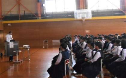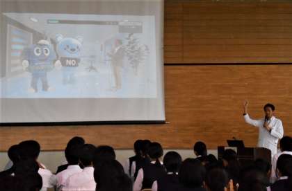 3年生 薬物乱用防止教室 公開日 2023/10/10 更新日 2023/10/10 3年 10月10日(火) 3年生は、6限目の時間に学校薬剤師の先生をお招きして、薬物乱用防止教室を行いました。 スライドや動画を使って分かりやすく教えていただき、薬物の有害性や危険性について、改めて学ぶことができました。