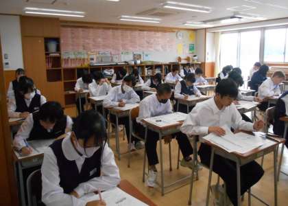 1年生は、社会・国語・理科の3教科の問題に臨みました。