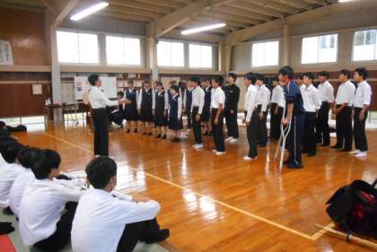 武道館で、3年2組と1年2組が交流会を行いました。