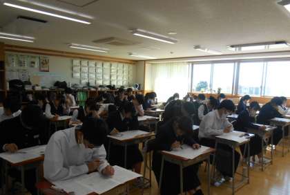 3年生は、1〜5限で、5教科の実力テストを実施しました。