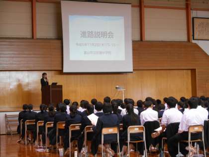 その後、進路説明会を行いました。受検の流れを含め、進路を決定するための今後の予定について、担当者が伝えました。