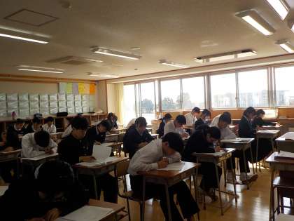 中教研学力調査2日目は、社会・数学の2教科の問題に取り組みました。