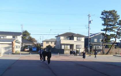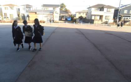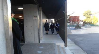 朝、玄関におられる先生に、中教研学力調査の手応えを報告している生徒もみられました。