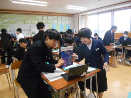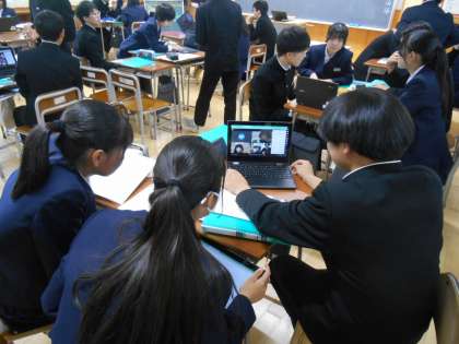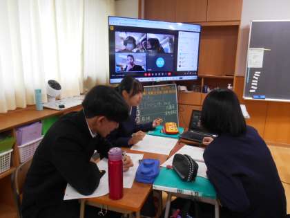 3年生は、英語の授業で台湾の福山中とオンラインで交流しました。