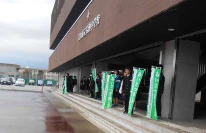 今朝は、3年3組のみなさんがあいさつ運動を行っていました。
