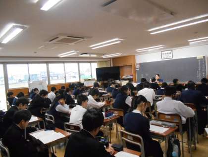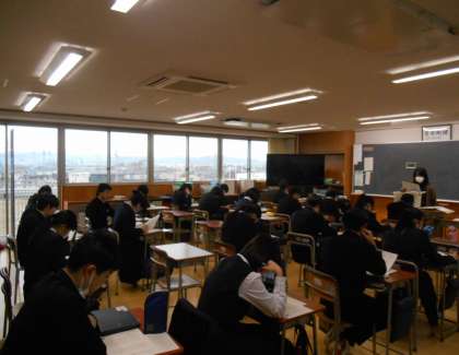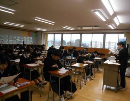 朝の時間に、中学生人権作文コンテストの入賞作品「大きく息を吸い込む世界へ」を担任が朗読し、生徒たちは差別や偏見について考えたことを感想用紙に記入していました。