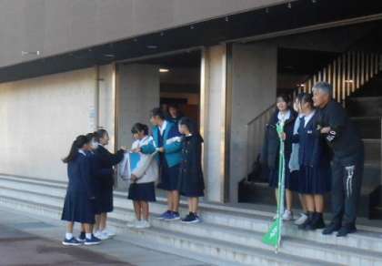 今朝も生徒会執行部が赤い羽根共同募金の活動を行っていました。