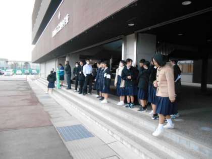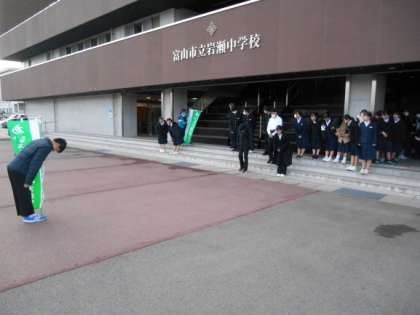 今週の中でも特に冷え込んだ今朝でしたが、たくさんの生徒たちが集まり、元気よくあいさつをしていました。