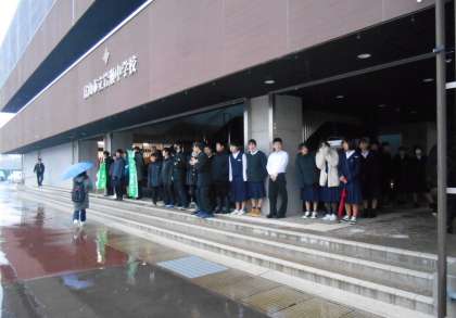 今日は、1年4組のみなさんが大変寒い中、元気よくあいさつ運動を行っていました。