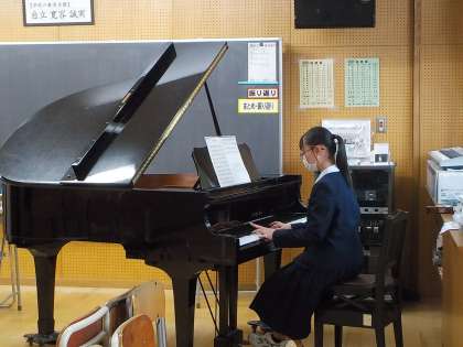写真下:校歌斉唱