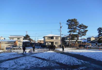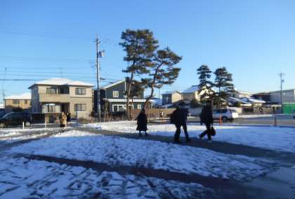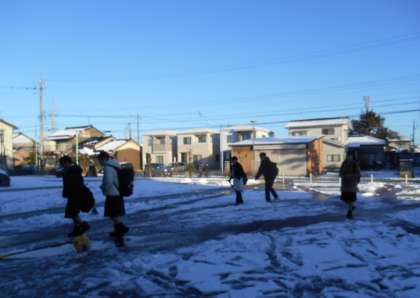 路面が凍結していたため、登校途中転倒した生徒が何人もいたようです。