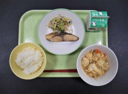 今日の献立は、「ごはん、牛乳、ふくらぎの西京焼き、塩ナムル、厚揚げの錦とじ」でした。