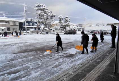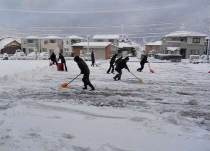 みんなが登校する前に、先生方と協力して前庭をきれいに除雪してくれました。お疲れさまでした。本当にありがとう。