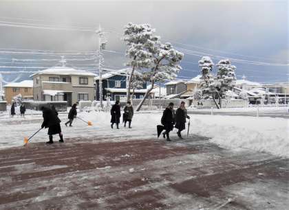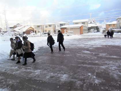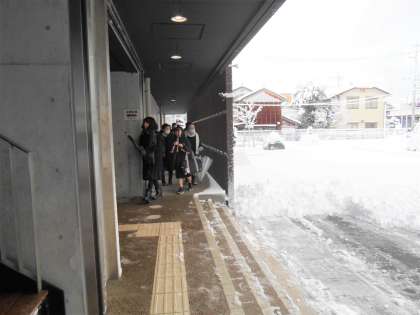 生徒たちは、コートやマフラー、手袋、ブーツなど、温かく防寒対策をしっかりして登校してきています。