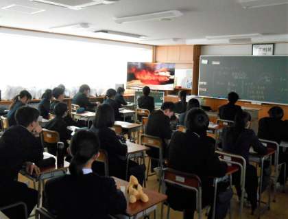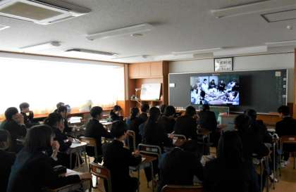 生徒たちは、動画を真剣に見ながら、メモを取っていました。
