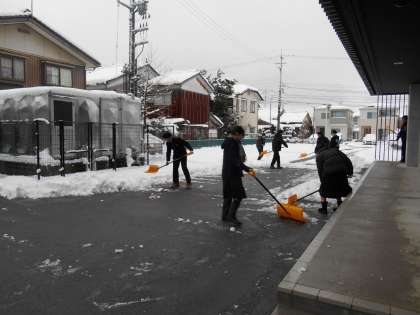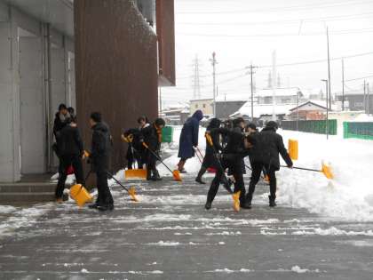 朝早くから除雪にとりかかってくれていたので、みんなが登校する頃には、正面玄関前の前庭の雪はすっかりきれいになっていました。