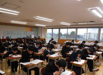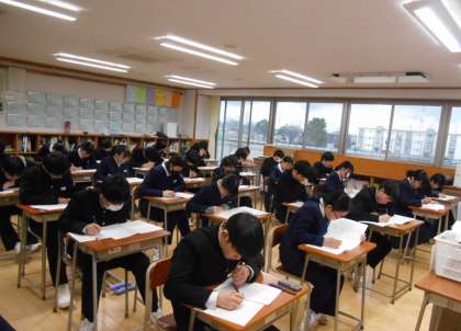 2年生は、1〜5限まで、5教科の実力テストに臨んでいます。