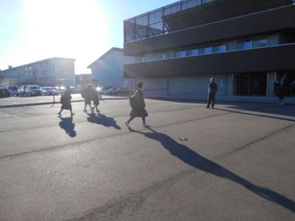 今朝は、1年2組のみなさんが元気にあいさつ運動を行っていました。