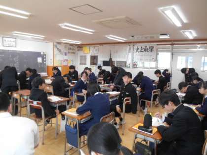 明日から始まる学年末評価に向けて、自習の時間も生徒同士で問題を出し合うなど、積極的に勉強をしていました。