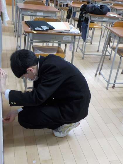 環境委員会主催で、1・2年生が朝の「ちょボラ隊」活動を行いました。